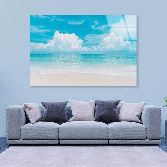 Beautiful Tropical Beach with Blue Sky Acrylic Glass Print Tempered Glass Wall Art 100% Made in Australia Ready to Hang