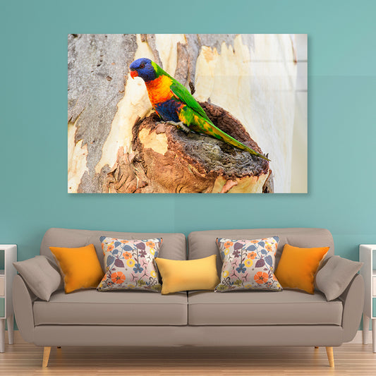 Rainbow Lorikeet Bird on Tree Acrylic Glass Print Tempered Glass Wall Art 100% Made in Australia Ready to Hang