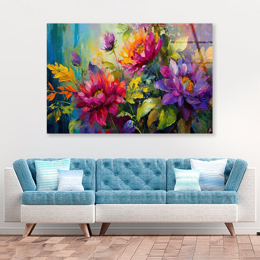 Oil Painting of Beautiful Flowers and Leaves Acrylic Glass Print Tempered Glass Wall Art 100% Made in Australia Ready to Hang
