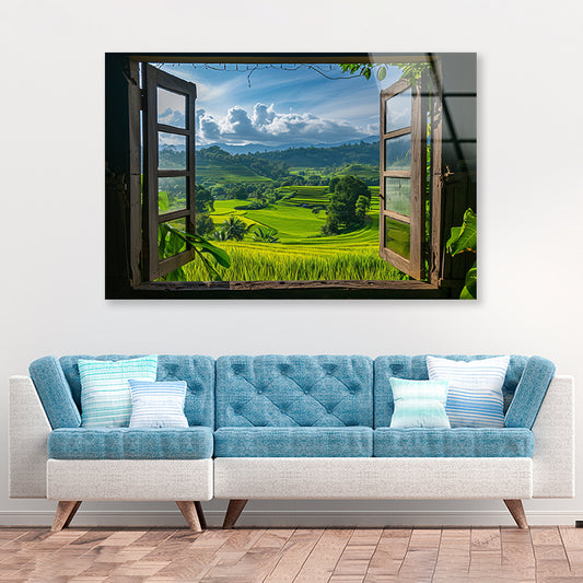 View of a Green Field through a Window Acrylic Glass Print Tempered Glass Wall Art 100% Made in Australia Ready to Hang