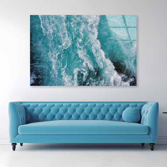 Close-Up of a Wave in the Ocean Acrylic Glass Print Tempered Glass Wall Art 100% Made in Australia Ready to Hang