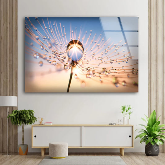 Waterdrops on Dandelion Flower Acrylic Glass Print Tempered Glass Wall Art 100% Made in Australia Ready to Hang