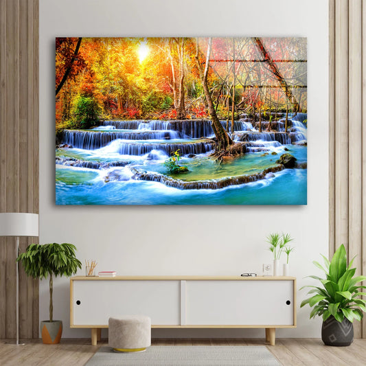 Waterfall in Autumn Forest Photograph Acrylic Glass Print Tempered Glass Wall Art 100% Made in Australia Ready to Hang