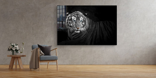 B&W Tiger Closeup View Print Tempered Glass Wall Art 100% Made in Australia Ready to Hang