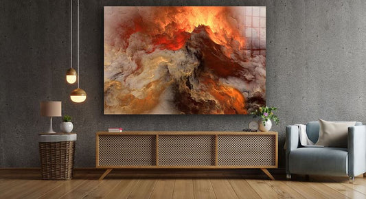 Orange Abstract Clouds Print Tempered Glass Wall Art 100% Made in Australia Ready to Hang