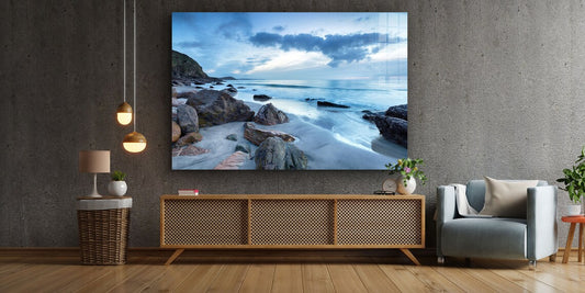Rocky Seashore View Print Tempered Glass Wall Art 100% Made in Australia Ready to Hang