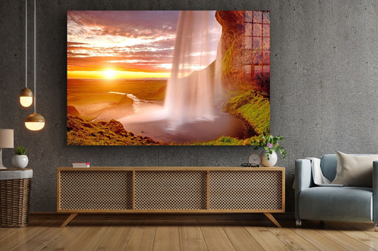 Waterfall & Mountains Print Tempered Glass Wall Art 100% Made in Australia Ready to Hang