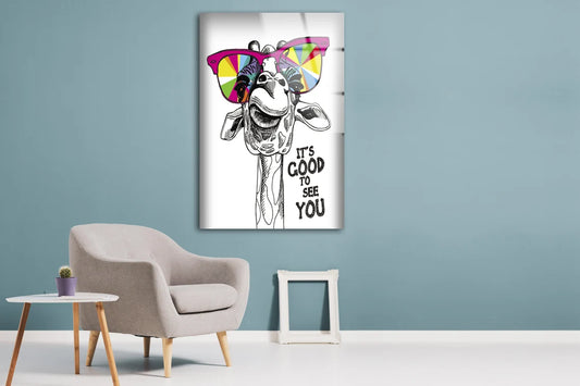 It's Good To See You Quote & Camel with Sunglasses Vector Art Acrylic Glass Print Tempered Glass Wall Art 100% Made in Australia Ready to Hang