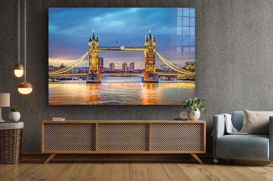 London Bridge Blue Sky Print Tempered Glass Wall Art 100% Made in Australia Ready to Hang