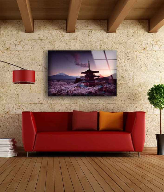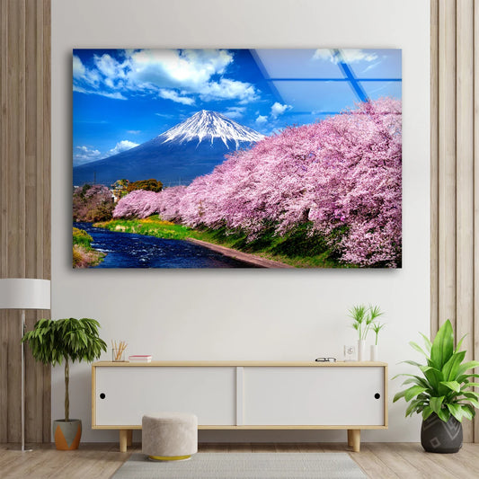 Castle & Blossom Trees with Mount Fuji View Photograph Acrylic Glass Print Tempered Glass Wall Art 100% Made in Australia Ready to Hang