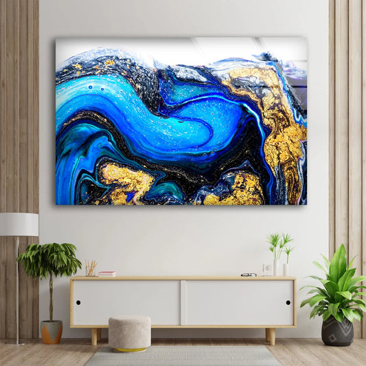 Blue White & Gold Abstract Design Acrylic Glass Print Tempered Glass Wall Art 100% Made in Australia Ready to Hang