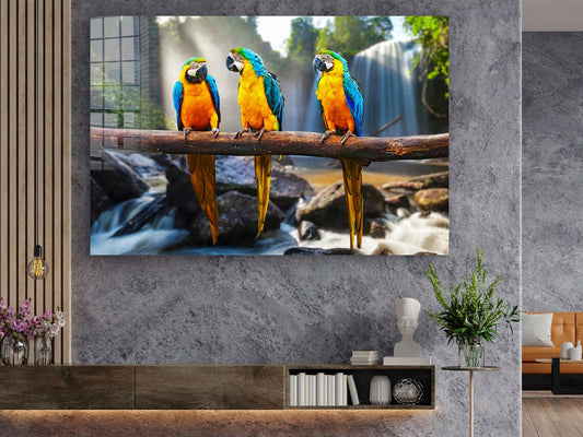 Macaw Birds on Branch Print Tempered Glass Wall Art 100% Made in Australia Ready to Hang