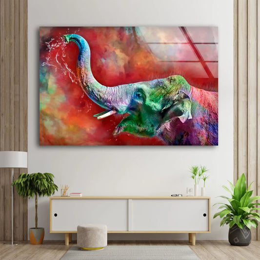 Colored Elephant with Water Photograph Acrylic Glass Print Tempered Glass Wall Art 100% Made in Australia Ready to Hang