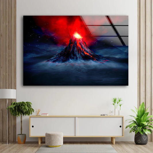 Volcano Night View Photograph Acrylic Glass Print Tempered Glass Wall Art 100% Made in Australia Ready to Hang