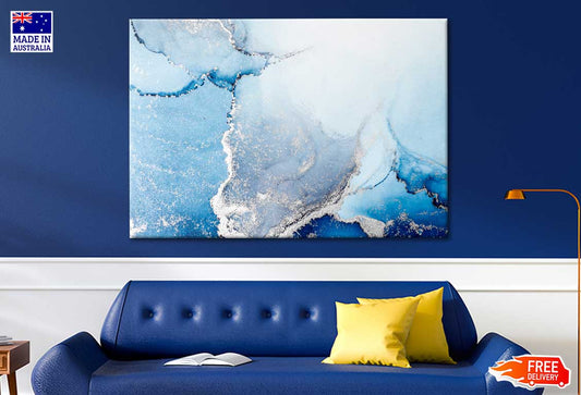 Blue Silver Marble Ink Abstract Print 100% Australian Made