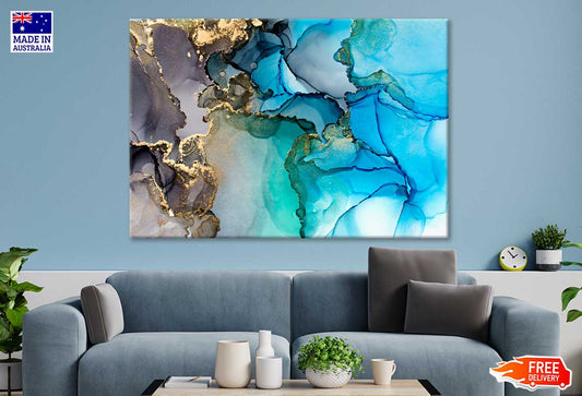 Blue Gold Alcohol Ink Print 100% Australian Made