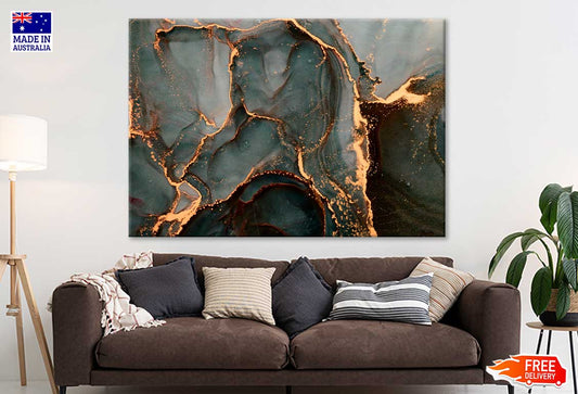 Blue Gold Black Mixture Of Colors Abstract Print 100% Australian Made