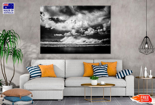Beach On Waves & Cloudy Sky B&W Print 100% Australian Made