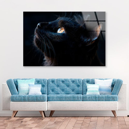 Black Cat with A Yellow Eye Staring Up Acrylic Glass Print Tempered Glass Wall Art 100% Made in Australia Ready to Hang