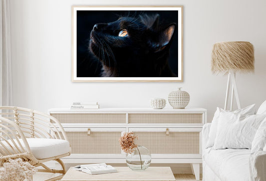 Black Cat with A Yellow Eye Staring Up Home Decor Premium Quality Poster Print Choose Your Sizes