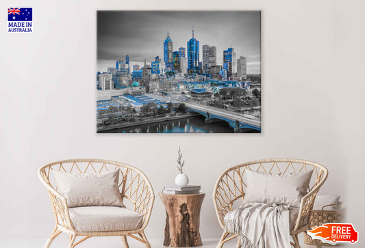Blue Toned White Flowers Black and White Wall Art Decor 100% Australian Made