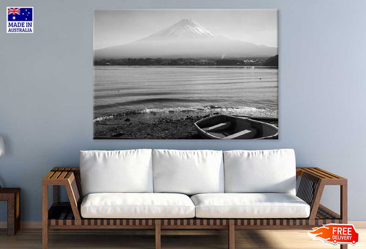 Boat Near Lake & Mountain B&W Photograph Print 100% Australian Made