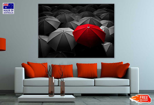 Black Umbrellas with Red B&W View Photograph Print 100% Australian Made