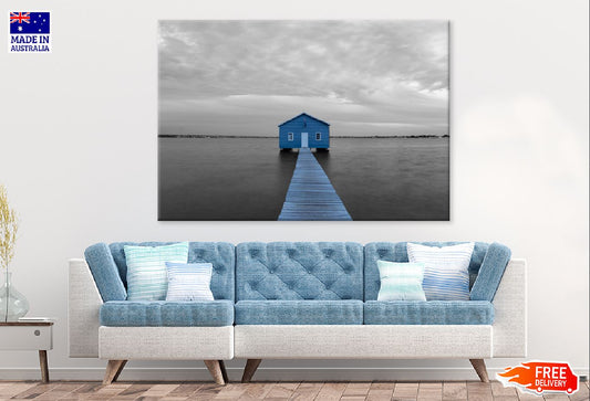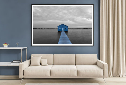 Blue House Over Lake B&W View Photograph Print 100% Australian Made