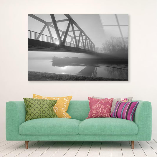 Bridge Over the Mittel land Canal in The Morning Fog Acrylic Glass Print Tempered Glass Wall Art 100% Made in Australia Ready to Hang