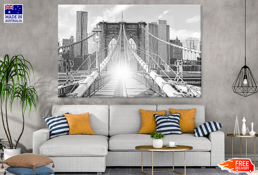 Bridge & City Scenery B&W Photograph Home Decor Premium Quality Poster Print Choose Your Sizes