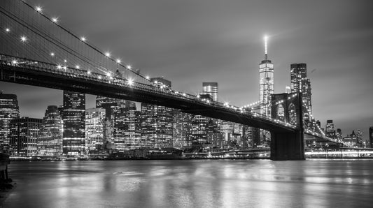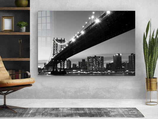 Bridge Night Lights B&W Print Tempered Glass Wall Art 100% Made in Australia Ready to Hang