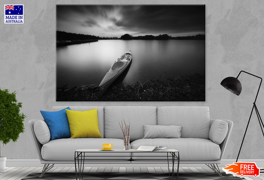 Boat on Lake & Sky View B&W Photograph Print 100% Australian Made