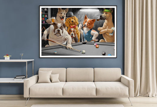 Dogs Playing Pool Decor Premium Quality Poster Print Choose Your Sizes