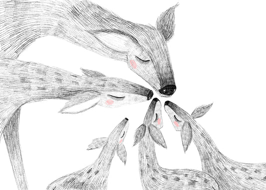 Deer Family B&W Drawing Home Decor Premium Quality Poster Print Choose Your Sizes