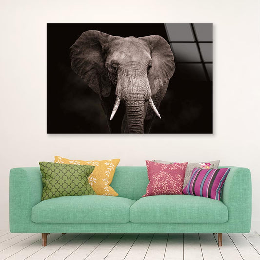 Elephant With Tusks Walking in The Dark Acrylic Glass Print Tempered Glass Wall Art 100% Made in Australia Ready to Hang
