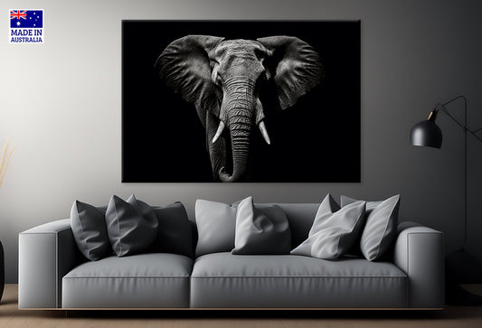 Elephant Isolated on Black Portrait Wildlife Animal Wall Art Decor 100% Australian Made