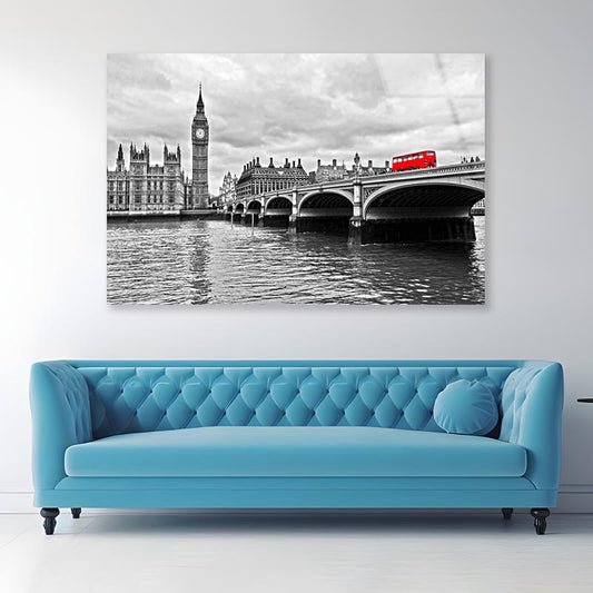 Red Bus on Westminster Bridge by The Houses of Parliament Acrylic Glass Print Tempered Glass Wall Art 100% Made in Australia Ready to Hang