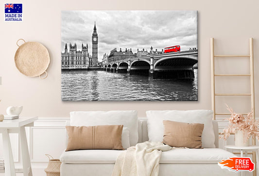 Red Bus on Westminster Bridge by The Houses of Parliament Wall Art Decor 100% Australian Made