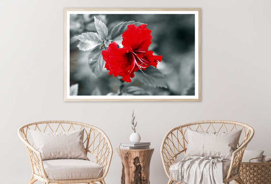 Red Hibiscus B&W View Photograph Home Decor Premium Quality Poster Print Choose Your Sizes
