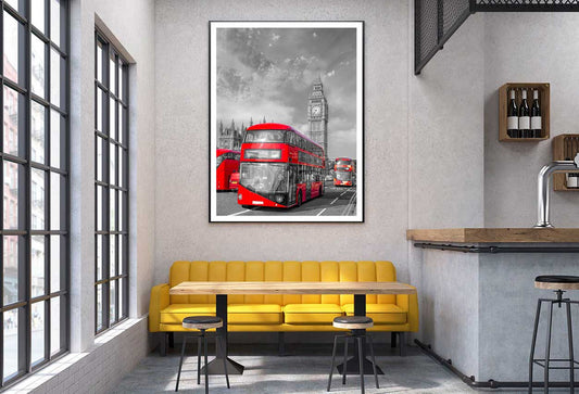 Red Buses near Bigben Tower B&W Photograph Home Decor Premium Quality Poster Print Choose Your Sizes