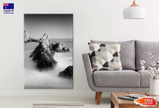 Rocks on Seashore Waves B&W View Photograph Print 100% Australian Made