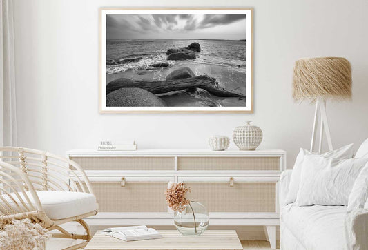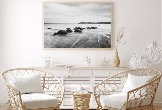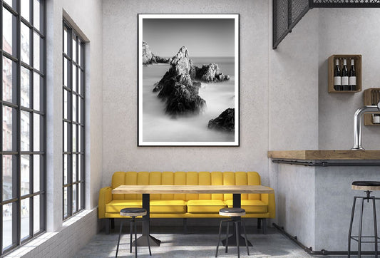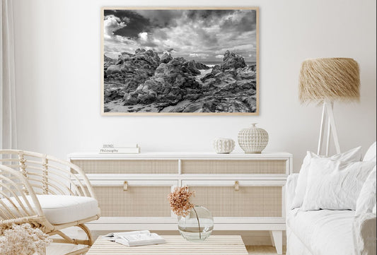 Rocky Coastal Beach B&W Scenery View Print 100% Australian Made