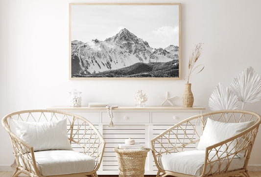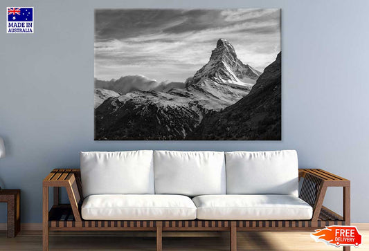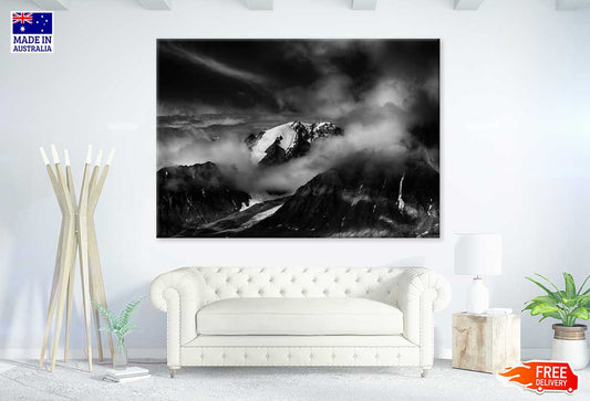 Snowy Mountain with Clouds B&W Photograph Print 100% Australian Made