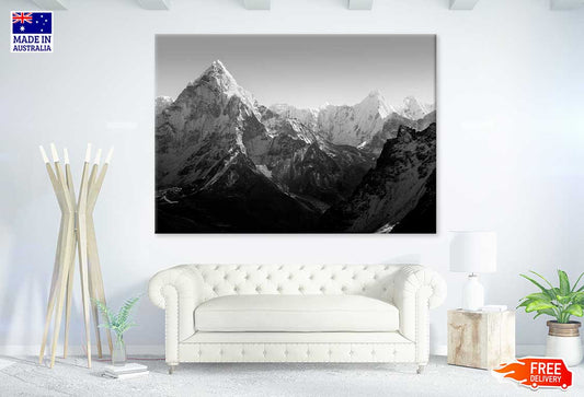 Snowy Mountain & Sky B&W View Photograph Print 100% Australian Made