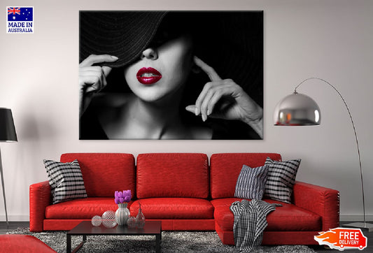 Stylish Girl with Red Lips B&W Photograph Print 100% Australian Made