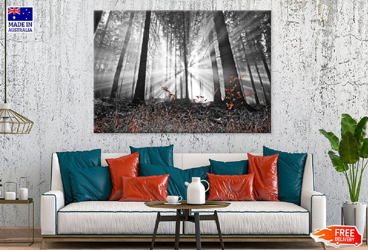 Sunrays Through Forest B&W Photograph Print 100% Australian Made