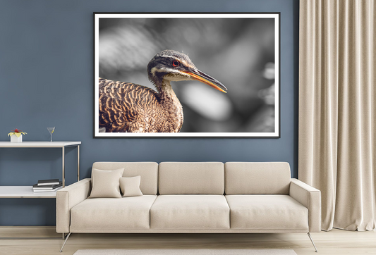 Sunbittern Bird Closeup B&W Photograph Home Decor Premium Quality Poster Print Choose Your Sizes