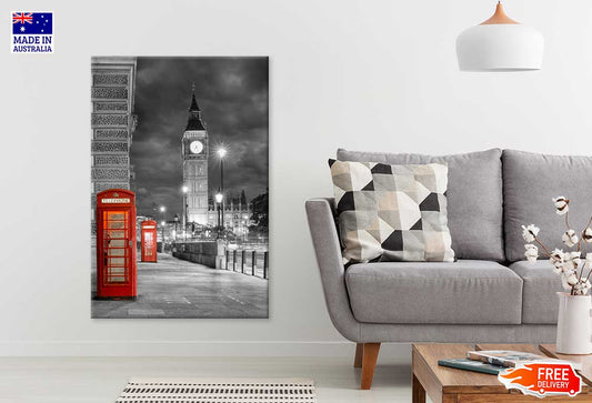 Telephone Booth near Big Ben B&W View Print 100% Australian Made