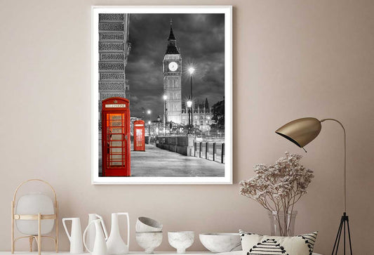 Telephone Booth near Big Ben B&W View Photograph Home Decor Premium Quality Poster Print Choose Your Sizes