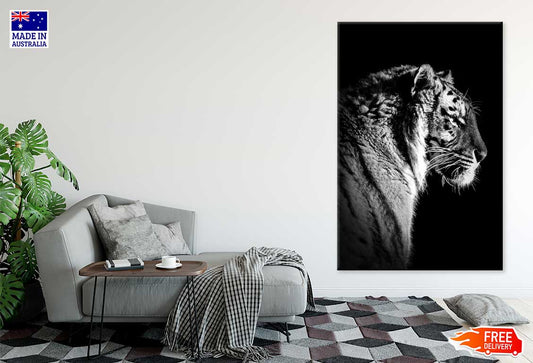 Tiger on Dark Side View B&W Photograph Print 100% Australian Made